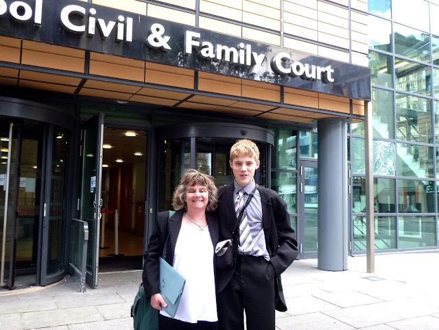 Above: Jason and his mum (Cath) outside court, following the victory for justice.